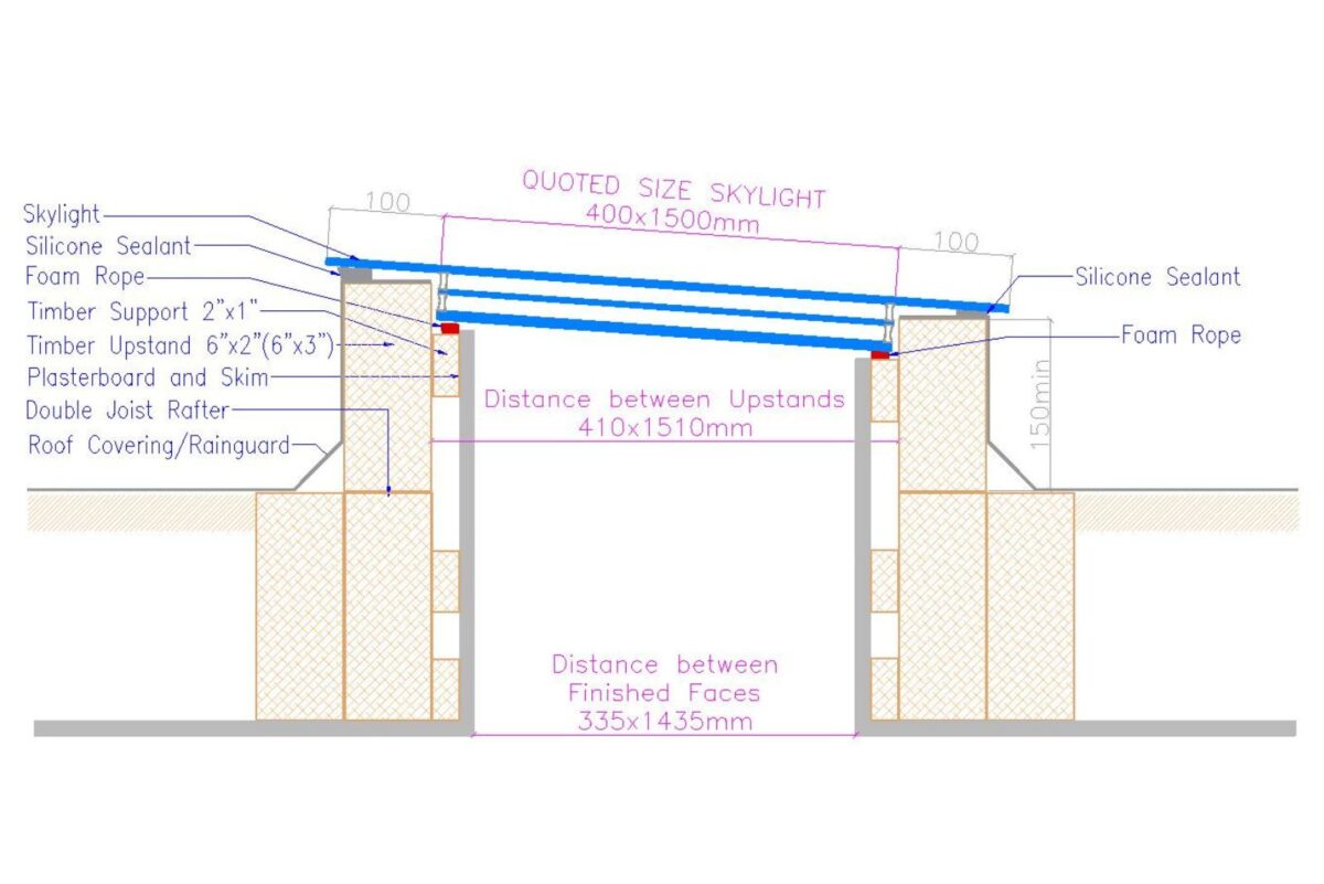 Si vous êtes à la recherche d’une solution personnalisée, Skylights1 peut fabriquer des puits de lumière sur mesure qui diffèrent de nos tailles standard et s’adaptent à vos dimensions requises.