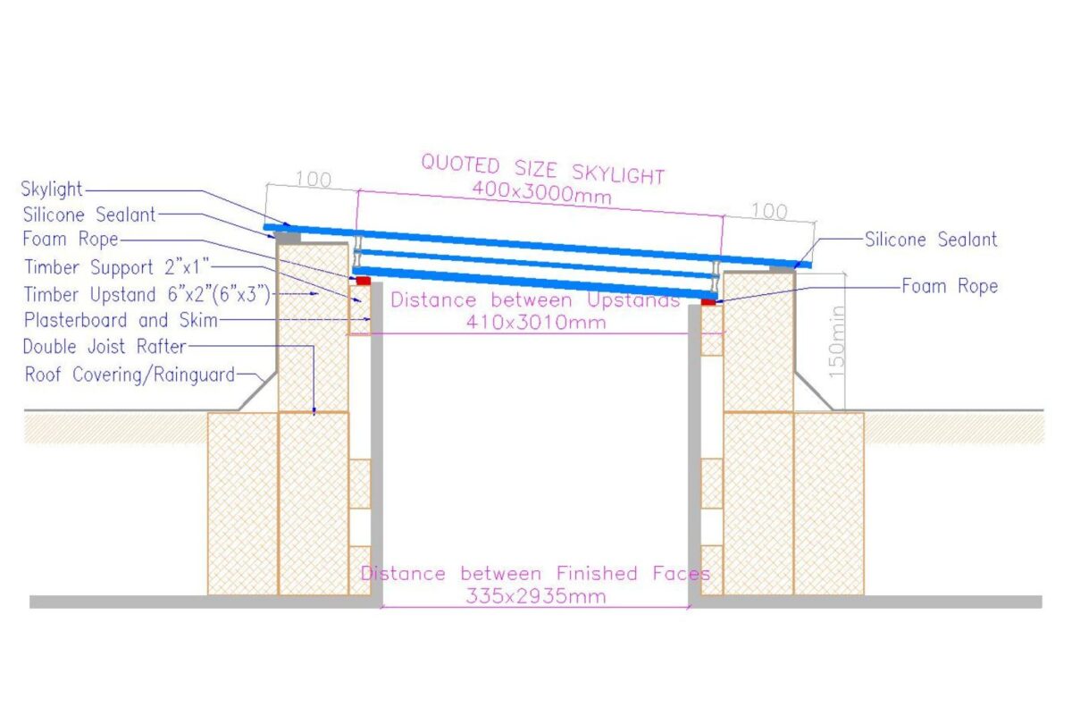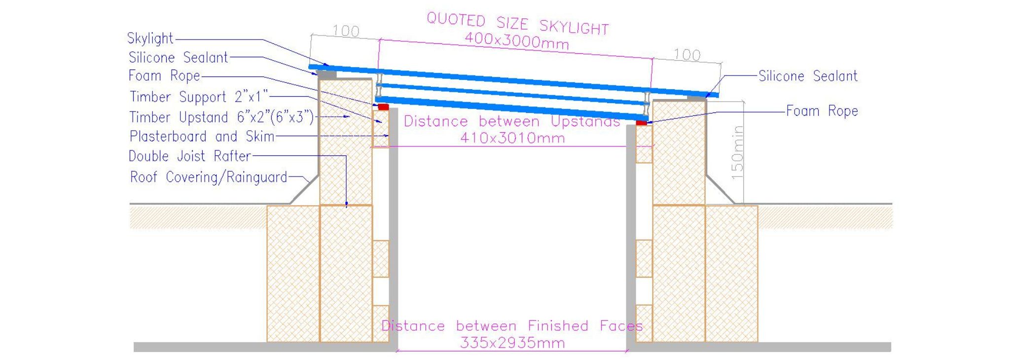 Si vous êtes à la recherche d’une solution personnalisée, Skylights1 peut fabriquer des puits de lumière sur mesure qui diffèrent de nos tailles standard et s’adaptent à vos dimensions requises.