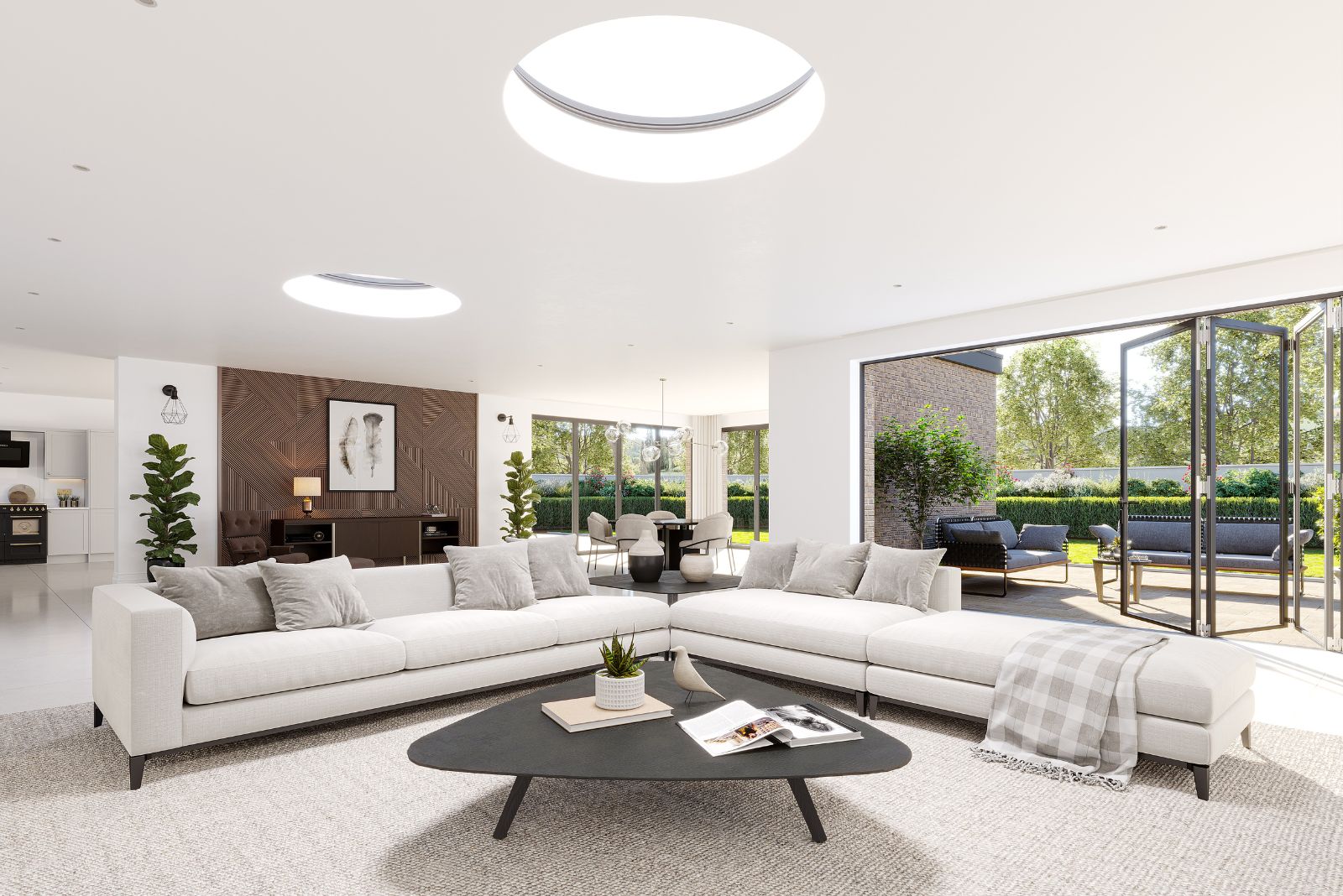 Circular Glass, a high-quality round rooflight, provides sleek aesthetics and comes in various sizes, suitable for fitting onto a builder’s upstand or with an integrated insulated GRP kerb. This modern glazing solution offers a neat look inside and a slender profile outside, maximizing natural light in modern spaces.