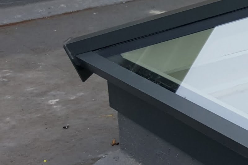 Une inclinaison minimale de 8 à 10 degrés par rapport à l'horizon doit être prévue pour éviter que l'eau ne s'accumule au milieu du panneau de verre (pour chaque mètre de lanterneau, une chute de 10 cm est nécessaire). Il vaut la peine de consacrer quelques minutes supplémentaires avant d'appliquer le silicone pour effectuer un test d'eau afin de s'assurer que l'eau ne s'accumule pas (même si vous installez du verre, il se pliera toujours au milieu).