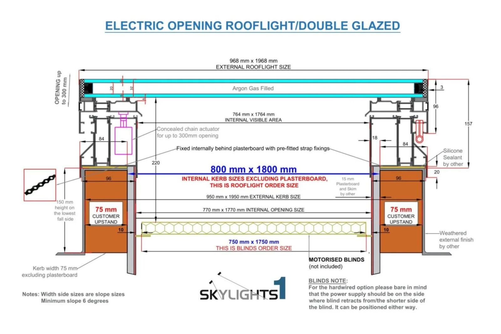 Le puits de lumière électrique Skylights1 est doté d’un double vitrage en verre trempé transparent pour la sécurité et la tranquillité d’esprit.
